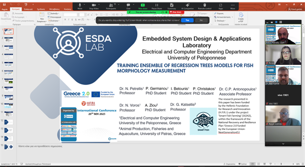 Our paper entitled “Technoeconomical Benefits in the Use of ERT Models for Fish Shape Alignment”, authored by P. Germanou, I. Betounis, P. Christakos, N. Petrellis, C.P. Antonopoulos and N. Voros was presented by prof. N. Petrellis on November 7, 2025 at the 25th IEEE International Conference on BioInformatics and BioEngineering, Athens, Greece. The paper will soon be available in the proceedings of the conference at IEEE Explore.
